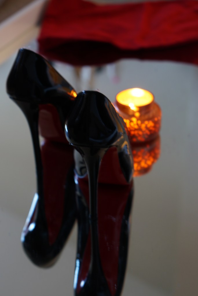 hidden in red sole stilettos,