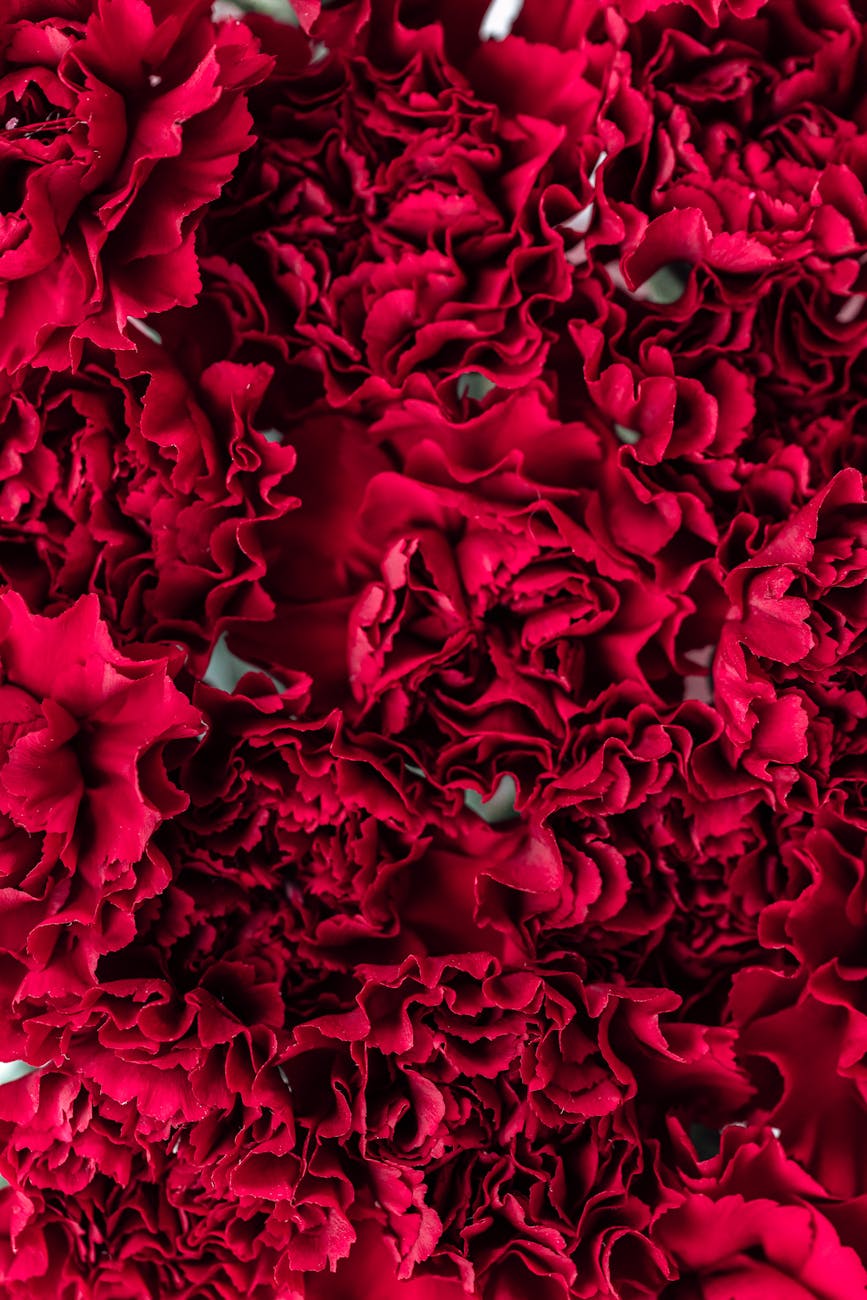 Pitter-patter of rain f a l l i n g on asphalt As I lay here warm underneath a woolly cloud made up of enchanted flowers - holding me. My unfocused gaze lands on a carnation... My thoughts s p i l l i ng like a bowl of cat eye marbles onto smooth butter pecan wood floors- ah yes carnations...marked on my ribs for Spain the taste of bitter orange rinds... the feel of sandstone in the air -estuco- neat geometric meets thundering baroque existing together... if you must, going further back it was - remembrance for the d e a d . cellophane wrapping touching outer blood red petals vampire buds suspended in time... eventually blooming a grayish skin toned rubber band on evergreen stems. macabre my grandmothers warm hands... placing them just so.